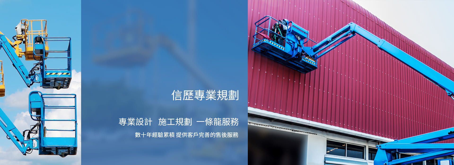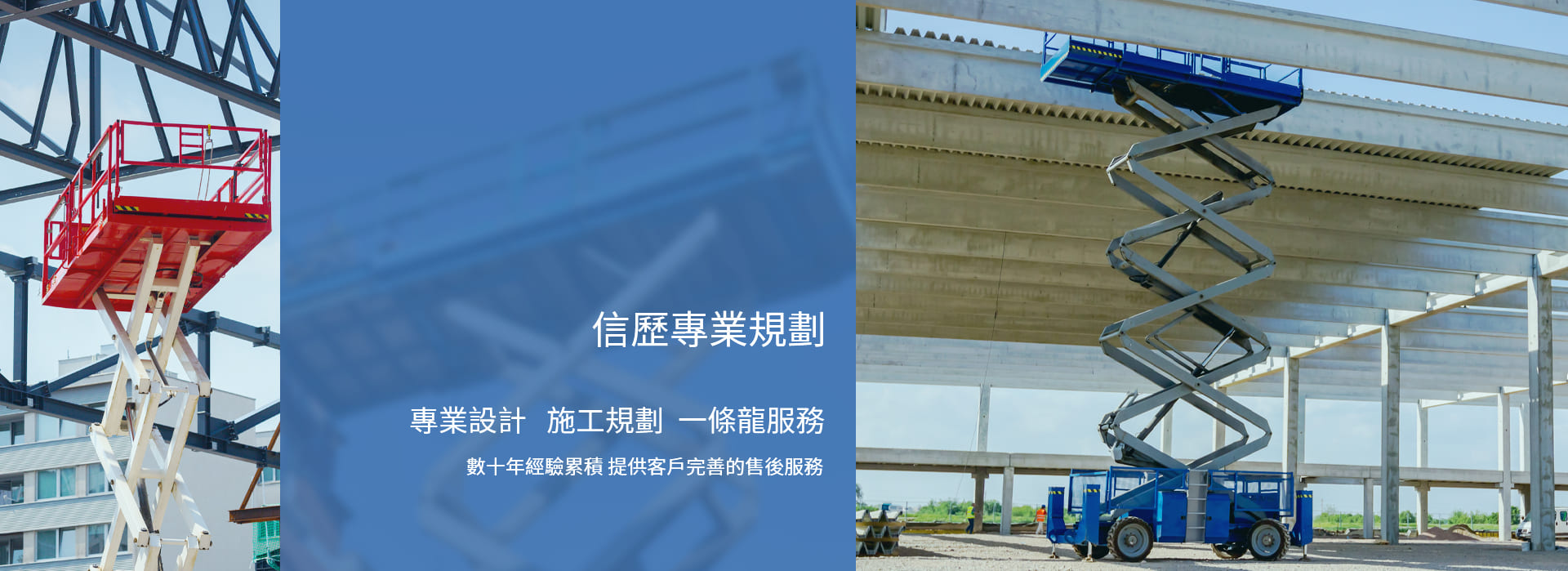 信歷實業股份有限公司成立於1980年,是專業轉機、搬運、高空作業車系統設備商。 我們致力於專業油壓潤滑、轉機、搬運、高空作業車系統設備四大領域,提供客戶運用於潤滑、輸送、搬運、高空作業之各行各業所需的專業設備與耗材。我們傾聽您的需求,並給予專業的規劃與建議,提供完善的售後服務與支援。以最至誠的心,本著誠信、熱忱的敬業精神,處處關懷顧客、時時幫助顧客、主動解決問題,並時時從顧客的角度思考。